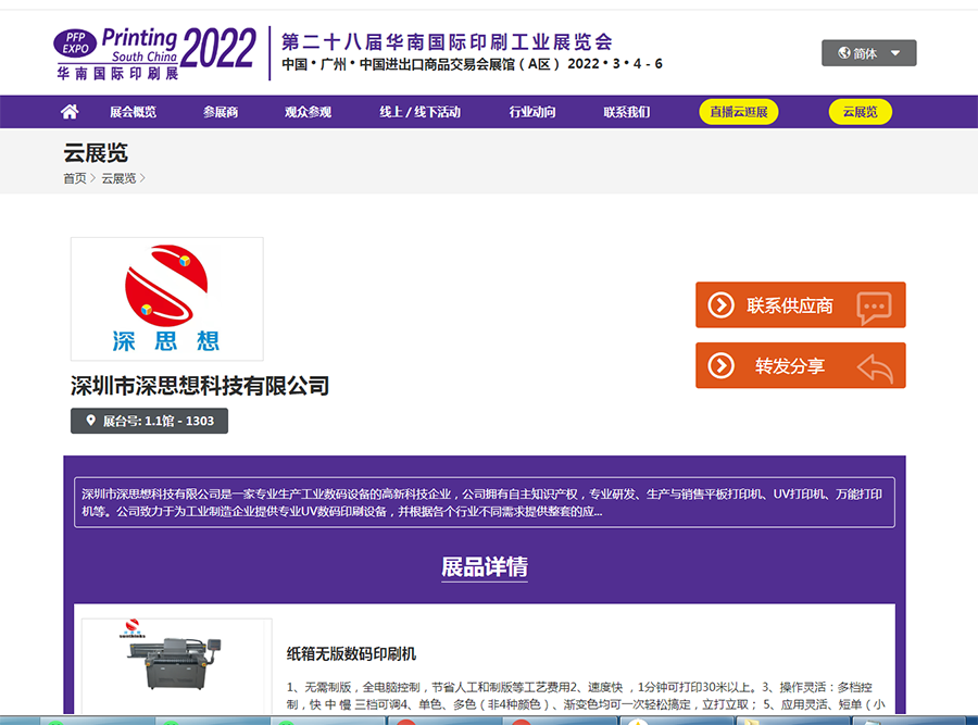 好(hǎo)消息來(lái)了(le),深思想工(gōng)業(yè)數(shù)♦∞碼印刷設備即将亮(liàng)相(xiàng)第二十八屆華南(nán)國(guó)際印刷工(gōng)業(<±≠φyè)展覽會(huì)!地(dì)址就(jiù)在1.1館1↔σ303。到(dào)時(shí),活動多(duō)多(duō),優惠多(duō)多(d§¥•uō),大(dà)家(jiā)一(yī)定要(yào)來(láδΩi)親自(zì)查看(kàn)哦!